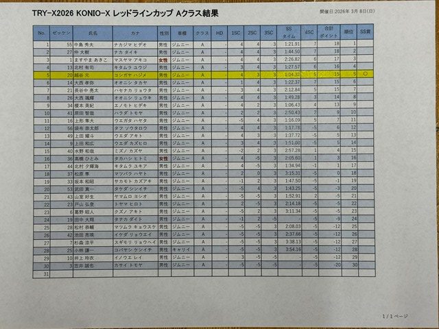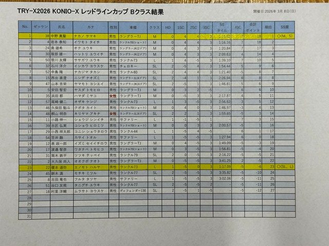 3/8コニオクロス、参加された皆様寒い中お疲れさまでした